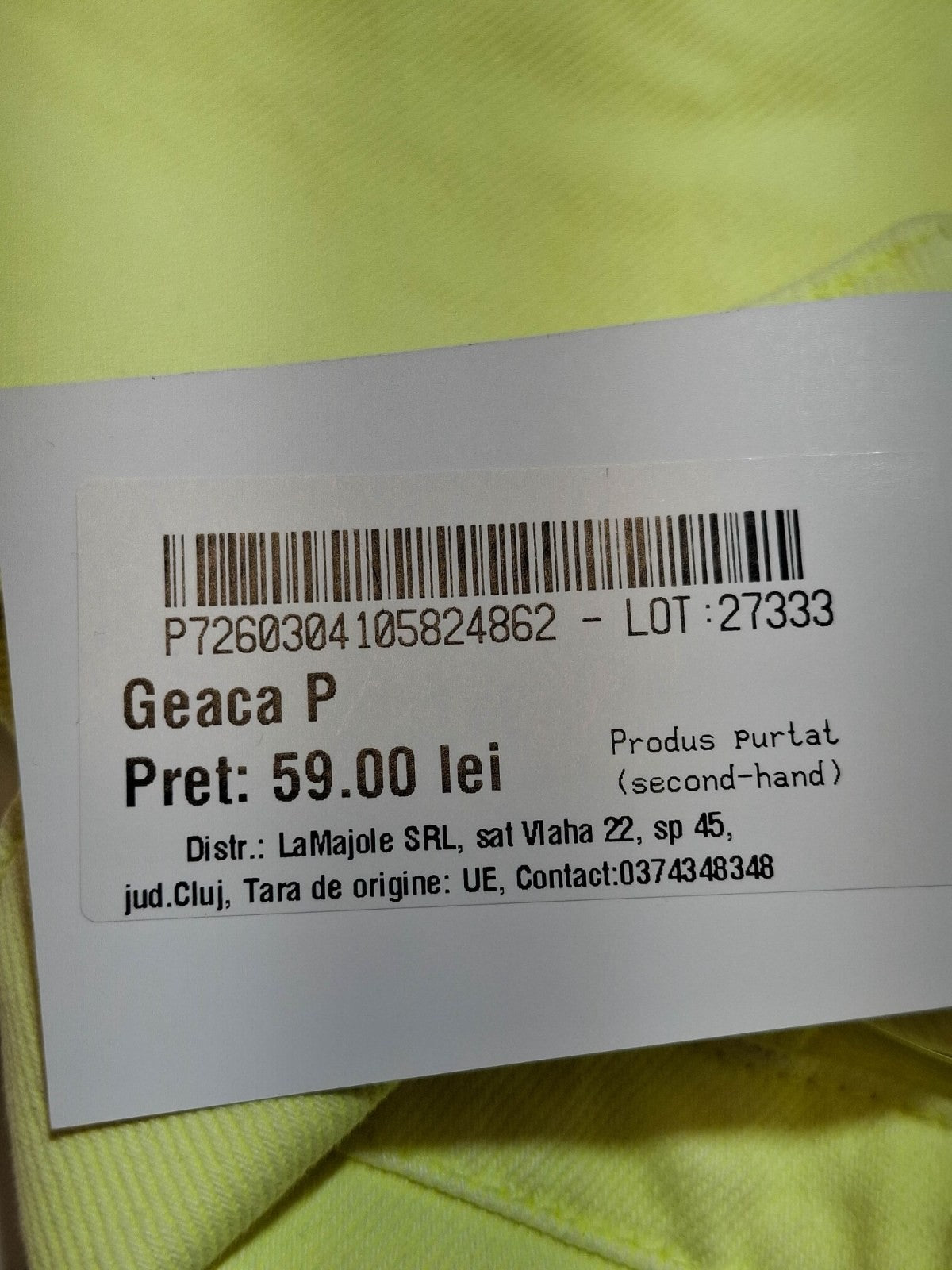 Marimea de pe eticheta: small